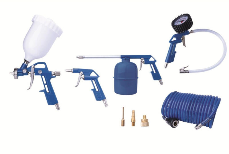 Scheppach kompresszor kiegészítő szett, 5 részes Kompresszor kiegészítő szett 5 részesNagyon praktikus és közkedvelt kiegészítő szett, amelyet jól lehet hasznosítani az összes hagyományos kompresszornálA fémötvözetből készült szerszámok gyorscsatlakozóval vannak ellátva A szett tartalma: